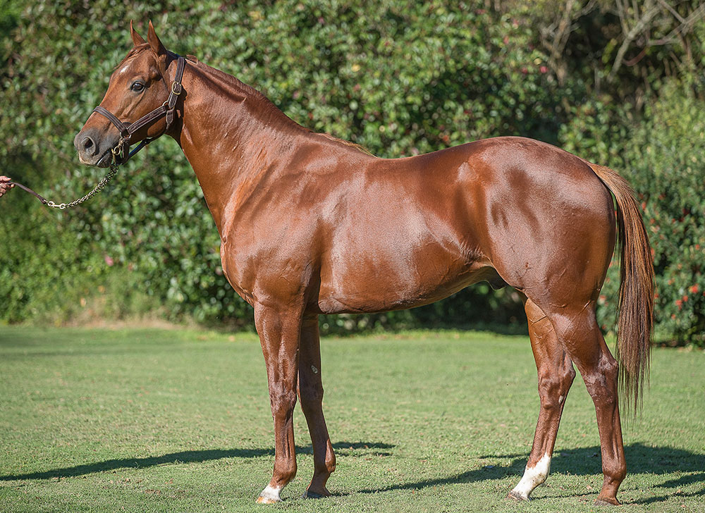 DISTORTED HUMOR (USA), por Forty Niner.- Ganador de 8 carreras en USA., incl. Commonwealth Breeders’ Cup Stakes (USA-2), Churchill Downs Handicap (USA-2), Salvator Mile Handicap (USA-3), Ack Ack Handicap (USA-3), Screen King Stakes (USA). Es padre de: FUNNY CIDE (u$s 3,529,412.- Campeón 3 años, Kentucky Derby (USA-1), Preakness S (USA-1), etc.), PATHFORK ($237,871, Campeón 2 Años, Ire, Boylesports.com Vincent O’Brien National (IRE-1), etc. Padrillo.), DROSSELMEYER (u$s 3,728,170, Belmont S (USA-1), Breeders’ Cup Classic (USA-1), etc., Padrillo.), REGAL RANSOM (u$s 1,894,835, Campeón 3 Años, en UAE, Saeed & Mohammed Al Naboodah Group U.A.E. Derby (UAE-2), etc., Padrillo.), HILLABY (u$s 282,265, Campeona Sprinter, en Canadá, Bessarabian S (CAN-2), 2nd Sweet Briar Too S. (CAN), etc.), DON DANDY (u$s413,963, Campeó Adulto en Puerto Rico, incl. Clasico Dia de Reyes, 2 veces etc.), FLOWER ALLEY (u$s 2,533,910, Travers S (USA-1), etc., Padrillo), HYSTERICALADY (u$s2,390,556, Humana Distaff S (USA-1), Delaware H (USA-2),Fleur de Lis H (USA-2), etc.), COMMENTATOR ($2,049,845, Whitney H (USA-1), 2 veces, etc.), BOISTEROUS ($1,458,792, Man o’ War S (USA-1), etc.), ANY GIVEN SATURDAY ($1,083,533, Haskell Invitational S (USA-1), Brooklyn H (USA-1), Dwyer S (USA-1), etc., Padrillo), AWESOME HUMOR ($848,950, Spinaway S (USA-1), etc.) JOKING (u$s 846,138, Vosburgh Stakes (USA-1), True North S (USA-2), etc.), FOURTY NINERS (u$s 673,825, Clement L. Hirsch Memorial Turf Championship S (USA-1), San Luis Rey H (USA-2), etc., Padrillo.), OF WHIMSY (u$s 555,133, Queen Elizabeth II Challenge Cup S (USA-1), etc,)